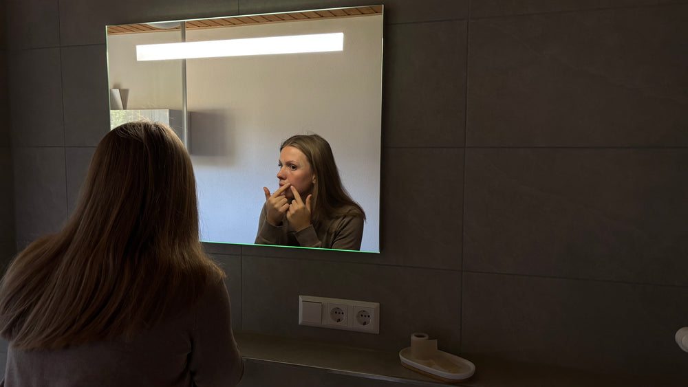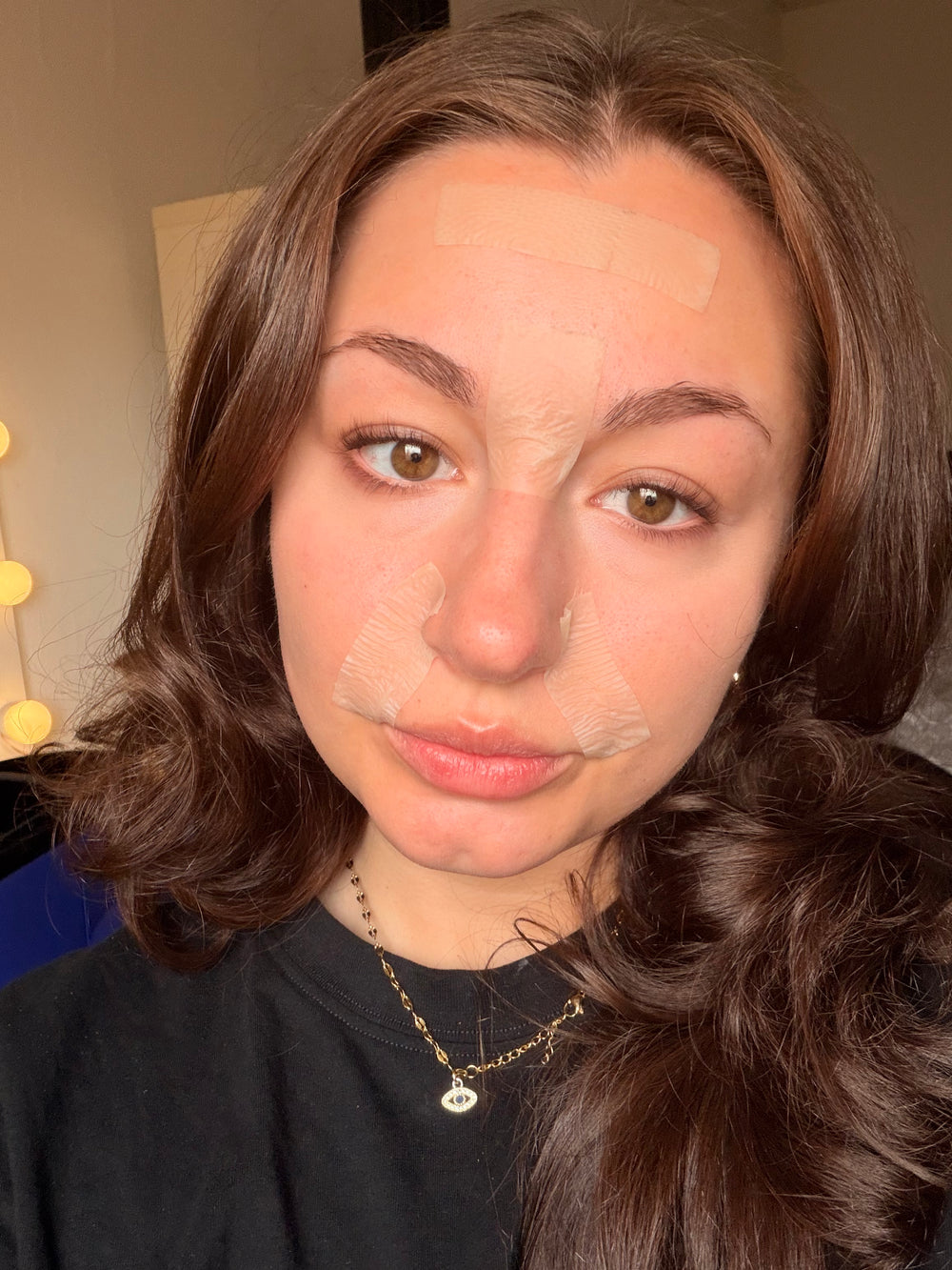 Gesicht gründlich reinigen. Haut komplett trocknen lassen — kein Rest-Feuchtigkeitscreme dort wo du klebst.